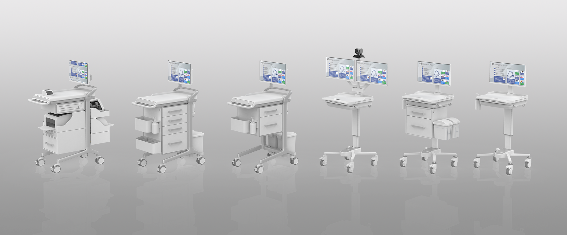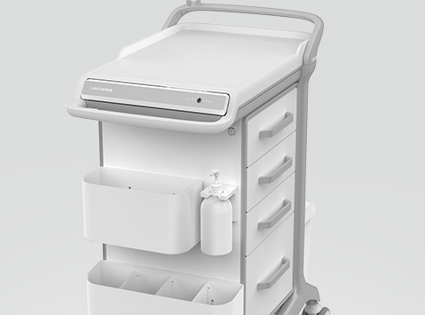 超大臺面,更考究的材質選用和整體設計,醫護人員單手就能輕松推動,自由穿梭于狹窄過道和病房內。